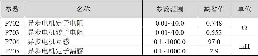 先通过Fn-2进入单机模式,然后通过Fn6功能触发异步电机离线参数辨识功能,完成对定子电阻,转子电阻,互感,漏感的辨识。运行Fn6功能后,使能灯亮,当屏幕显示DONE且使能灯灭时,辨识结束,辨识过程大概需要花费半分钟左右。辨识结束后,按后退键退出Fn6功能,此时可以通过P菜单査询辨识的参数结果P702~P705,通过E-set保存该结果。